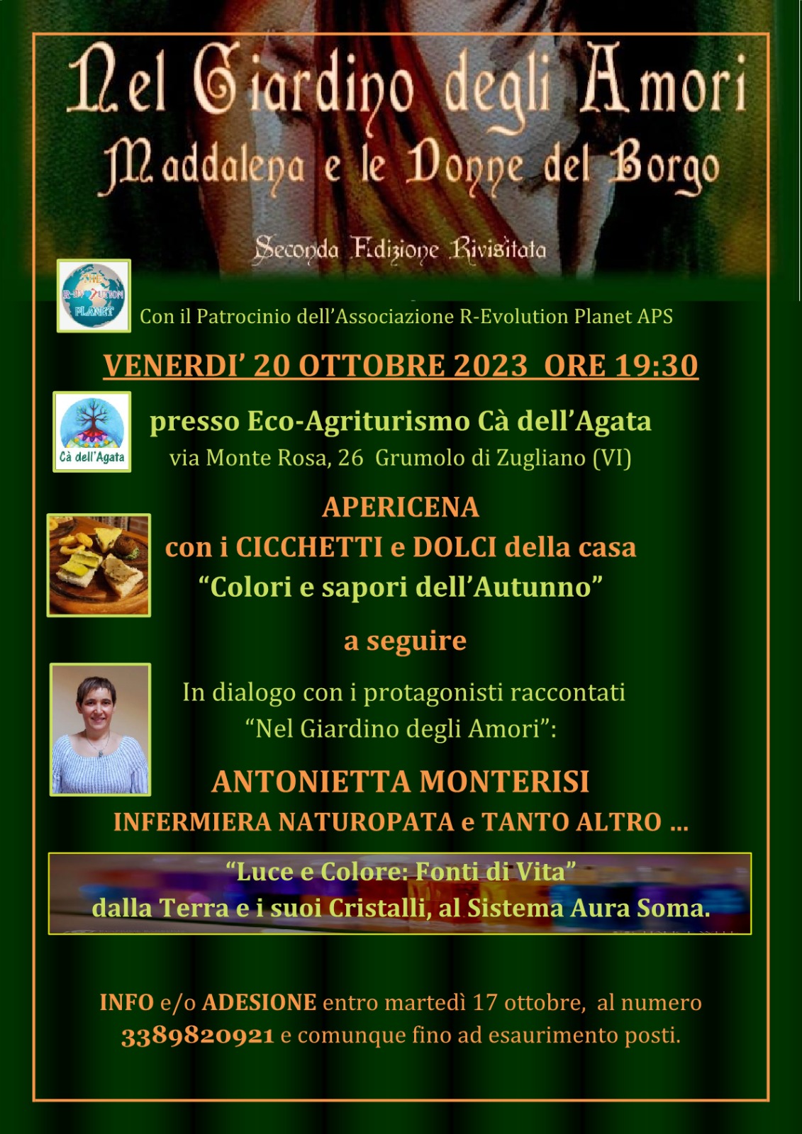 INFO e/o ADESIONE entro martedì 17 ottobre, al numero 3389820921 e comunque fino ad esaurimento posti.